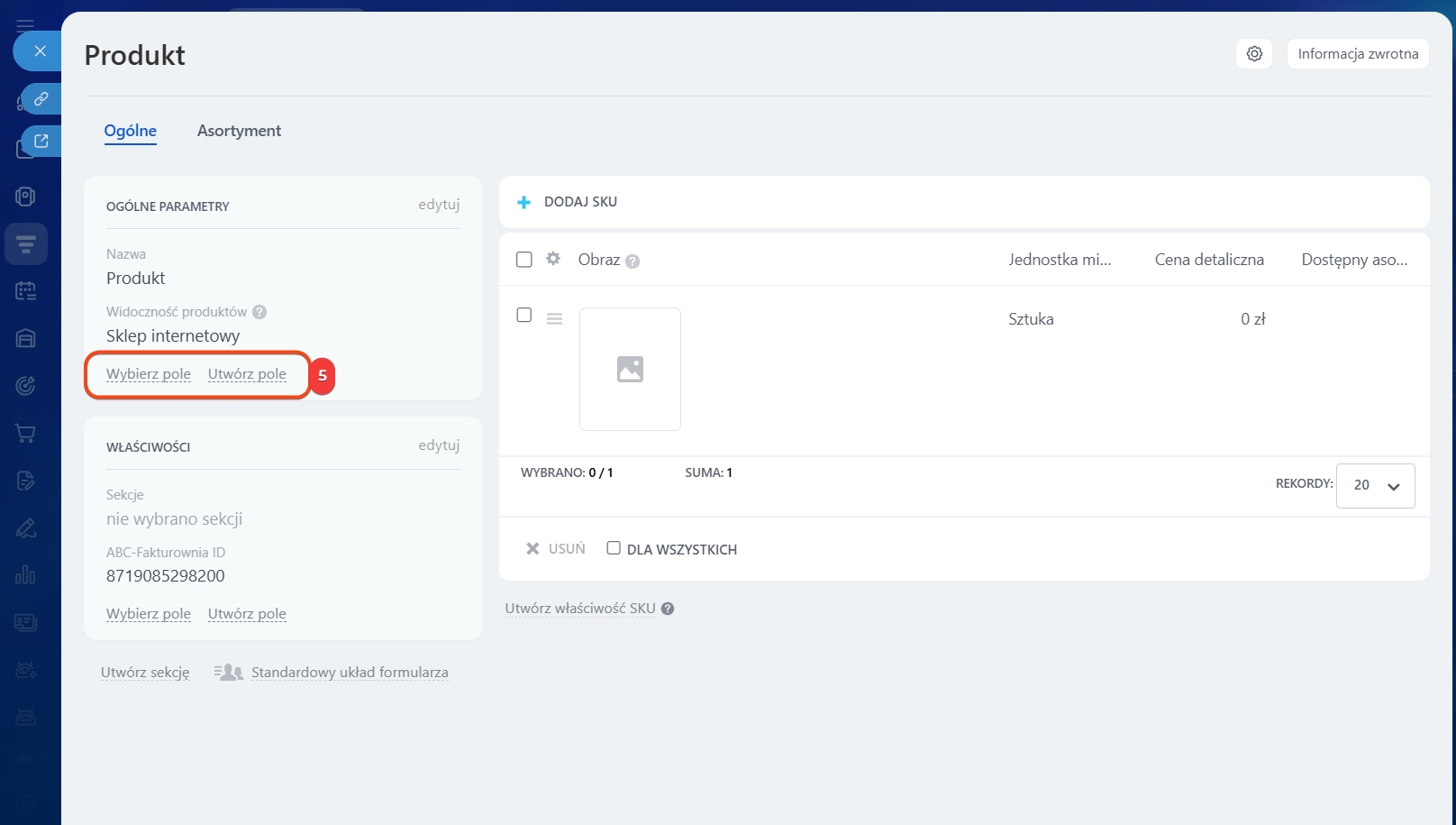 Formularz produktu można dostosować do potrzeb działu: wybrać widoczne pola, ukryć zbędne lub dodać nowe.