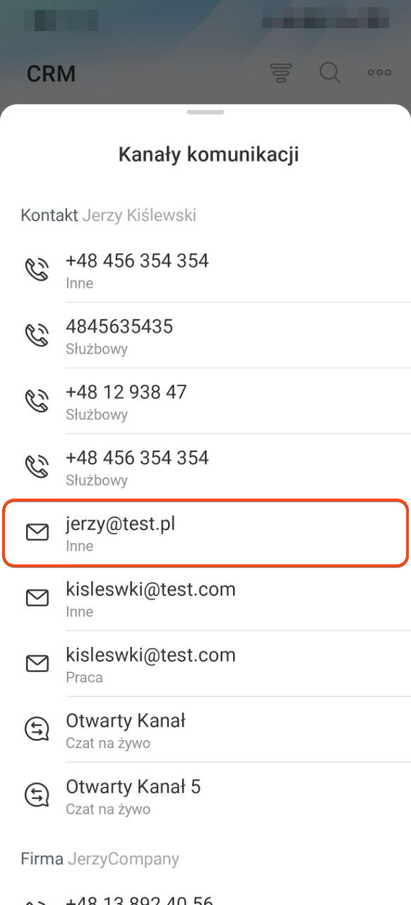 Z listy. Wybierz ten sposób, jeśli chcesz szybko skontaktować się z klientem bez otwierania formularza.