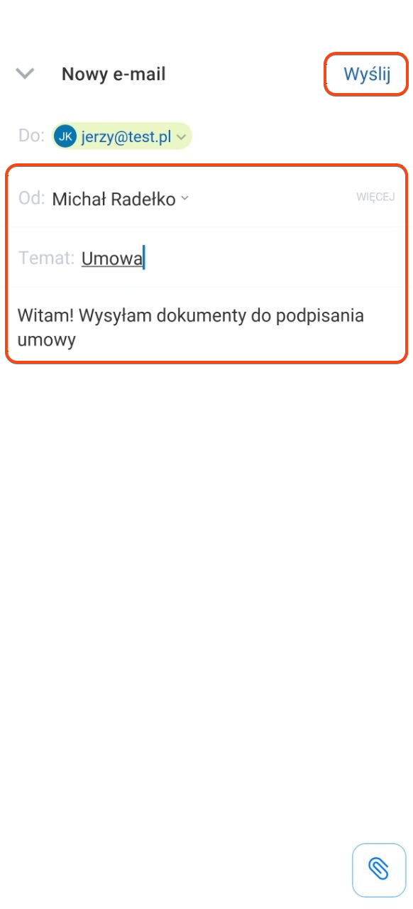 - Kliknij adres e-mail klienta — otworzy się okno tworzenia wiadomości.