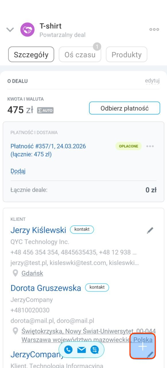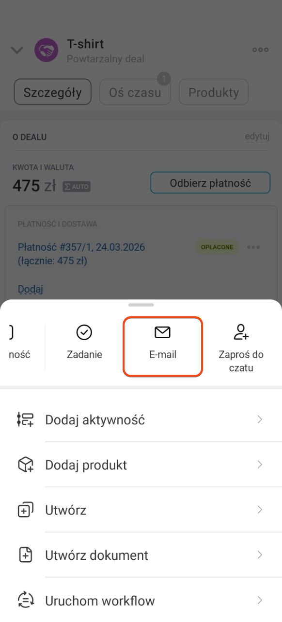 Z formularza elementu CRM. Ten sposób jest wygodny, jeśli już pracujesz z formularzem i chcesz widzieć całą historię komunikacji z klientem.