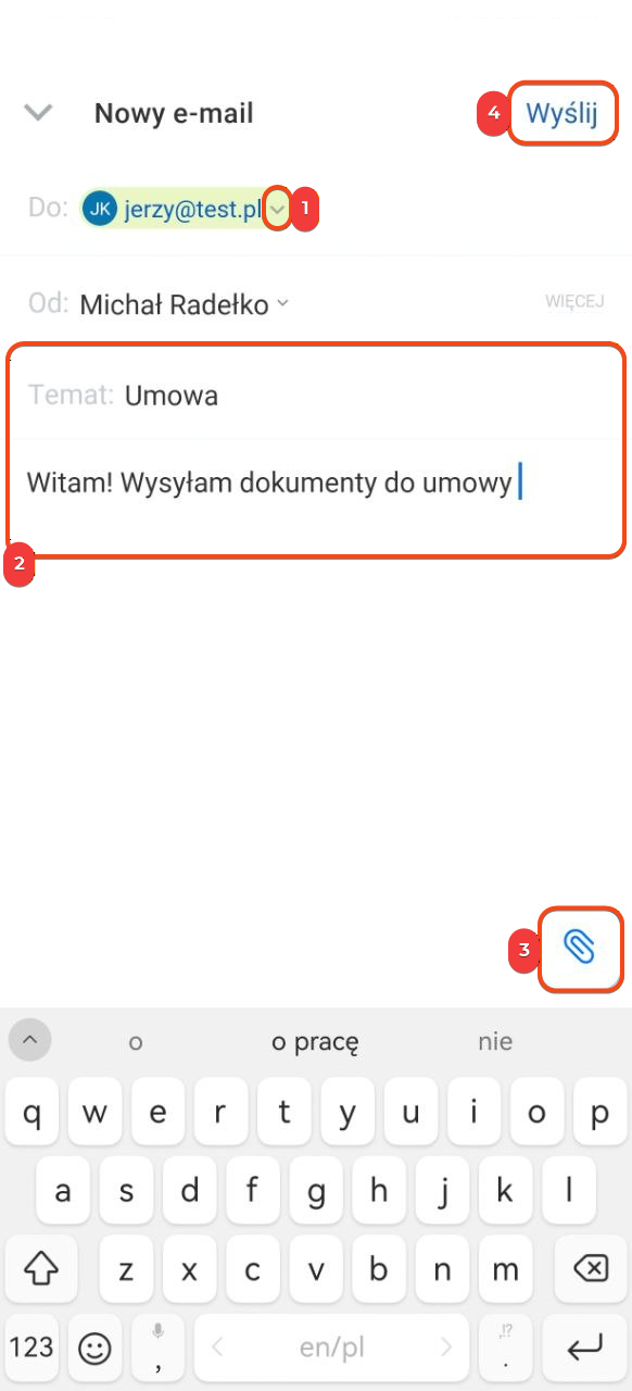 - Dodaj pliki w razie potrzeby — kliknij ikonę spinacza.