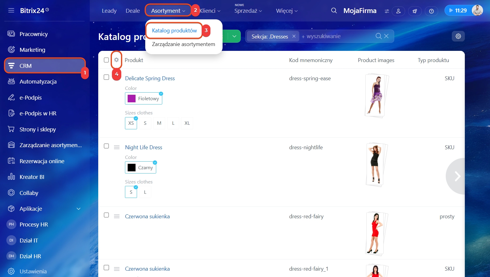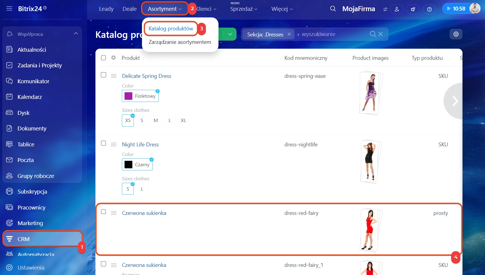 1–3. Przejdź do CRM > Asortyment > Katalog produktów.