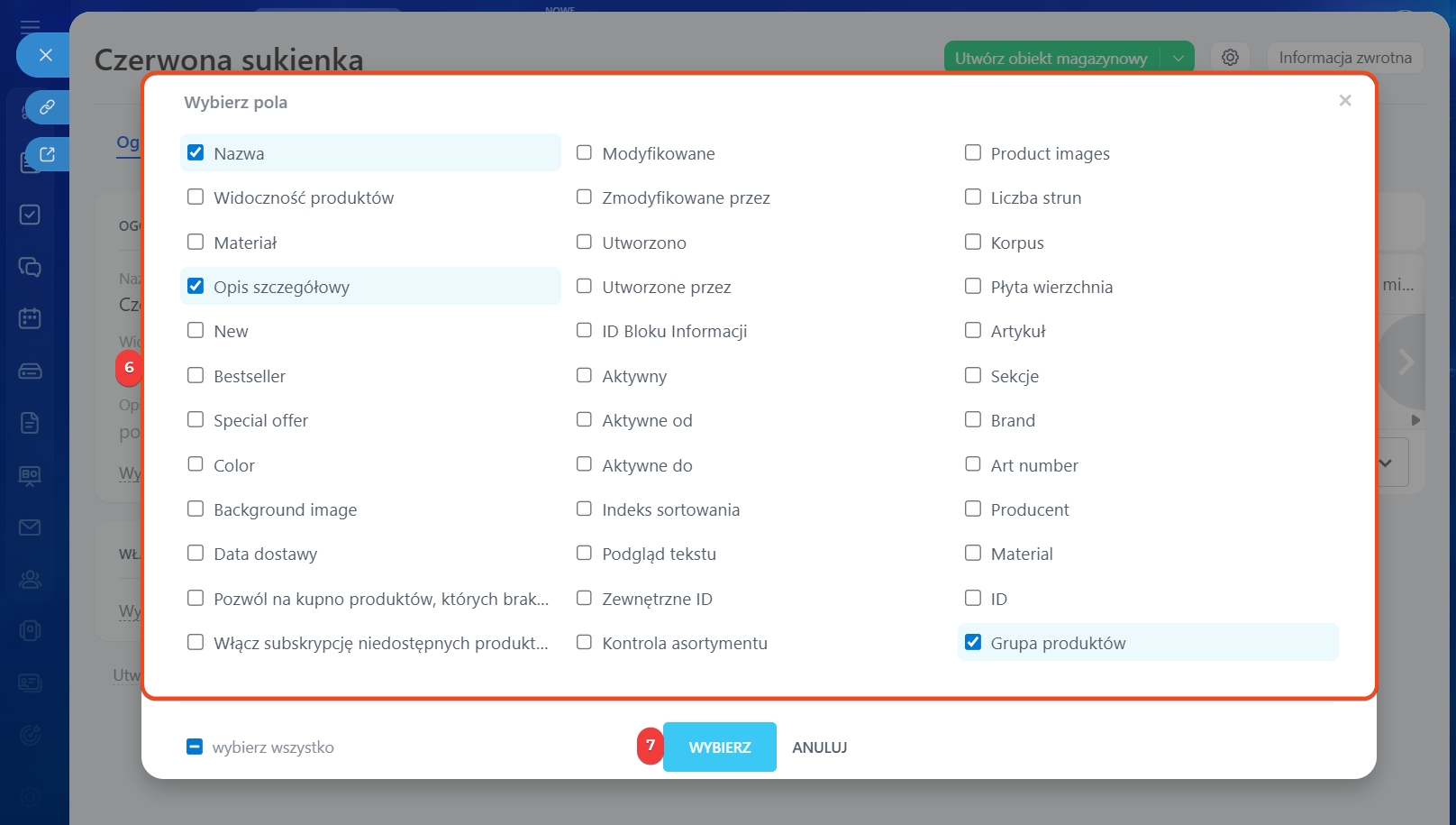 Jeśli pola nie są widoczne w karcie produktu, włącz ich wyświetlanie.