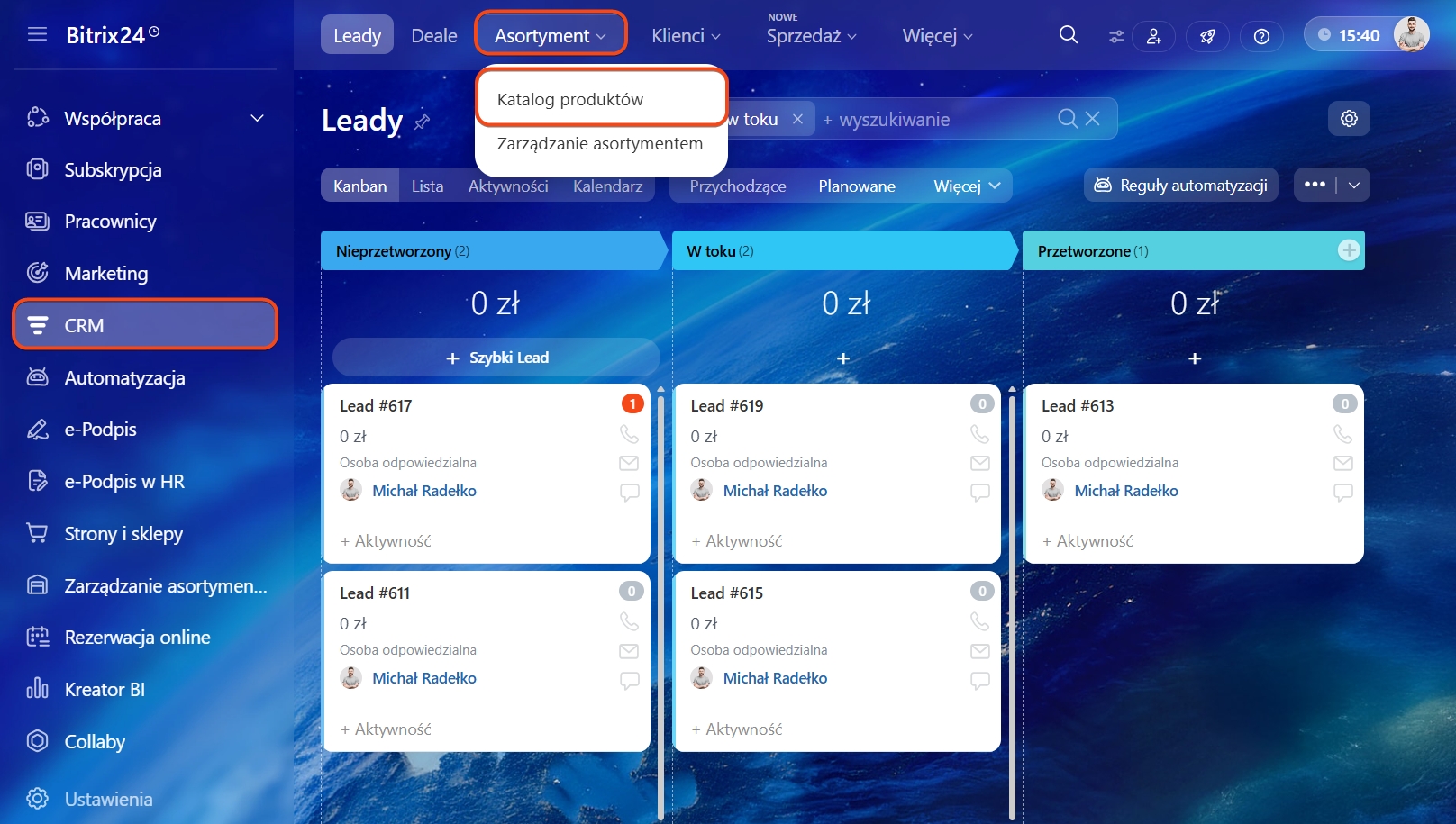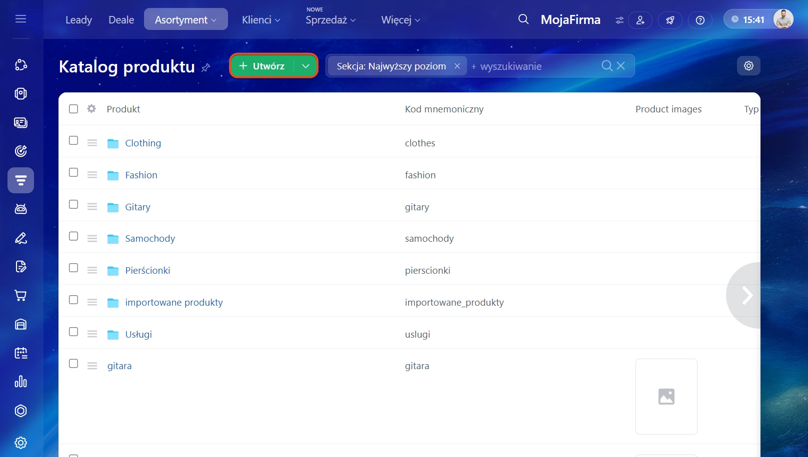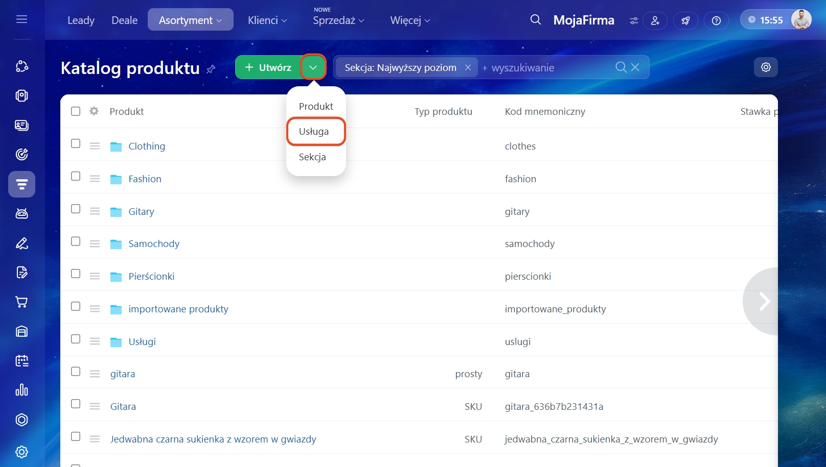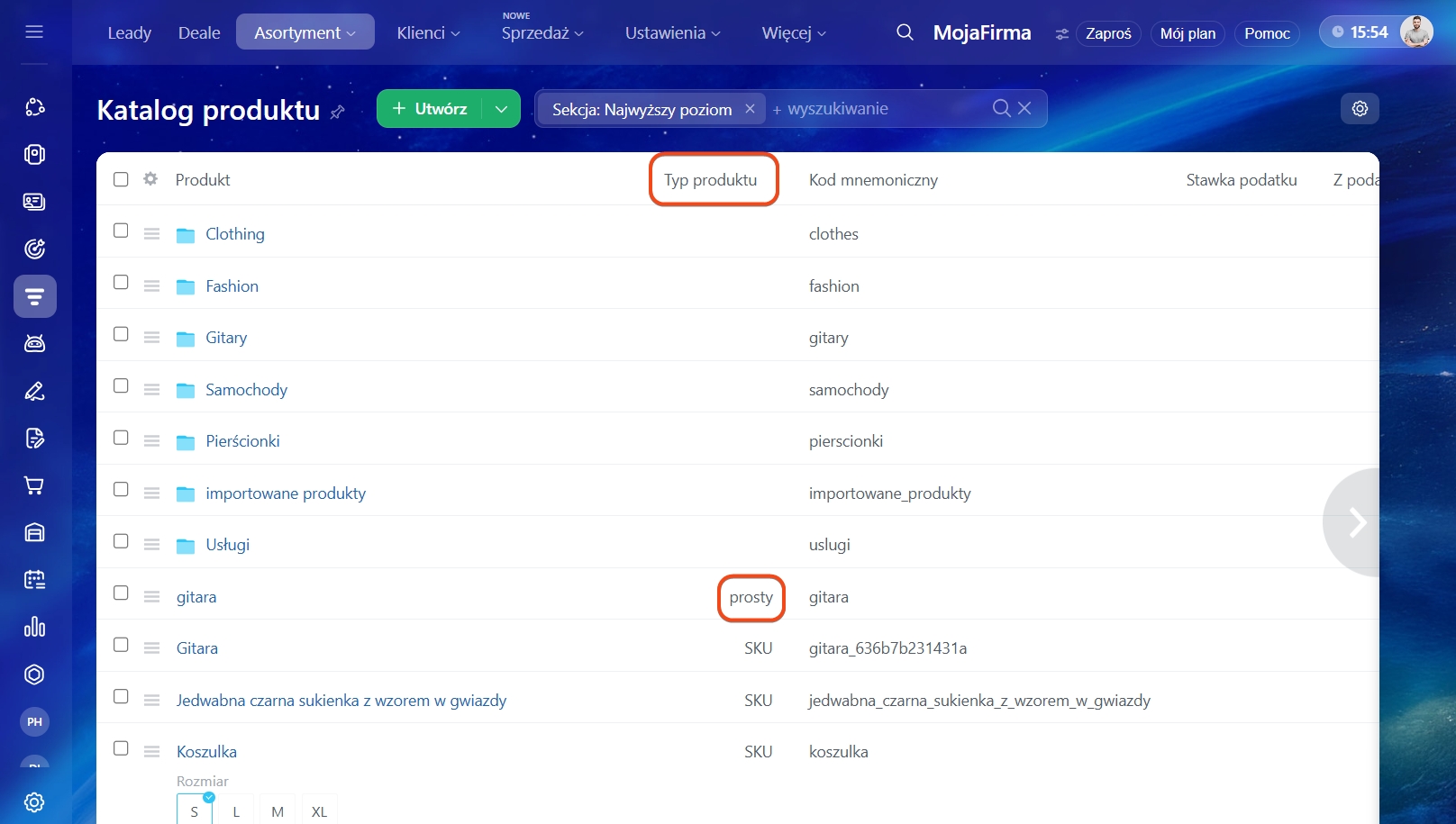 W katalogu Bitrix24 można pracować z dwoma typami produktów: