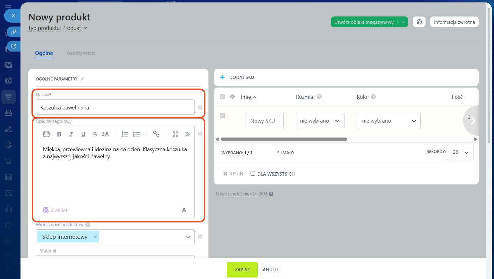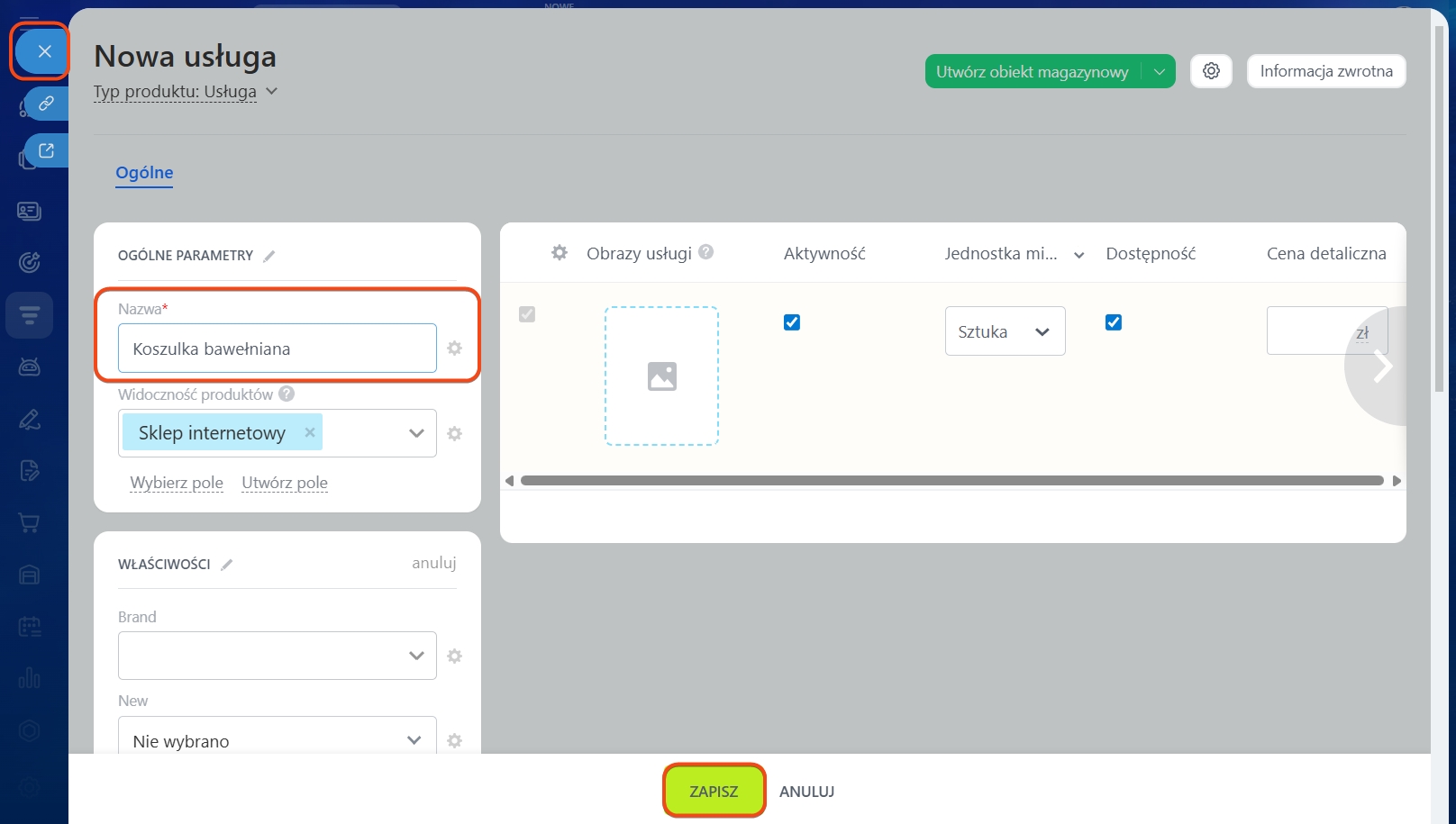 3. Zapisz formularz — produkt pojawi się w katalogu.