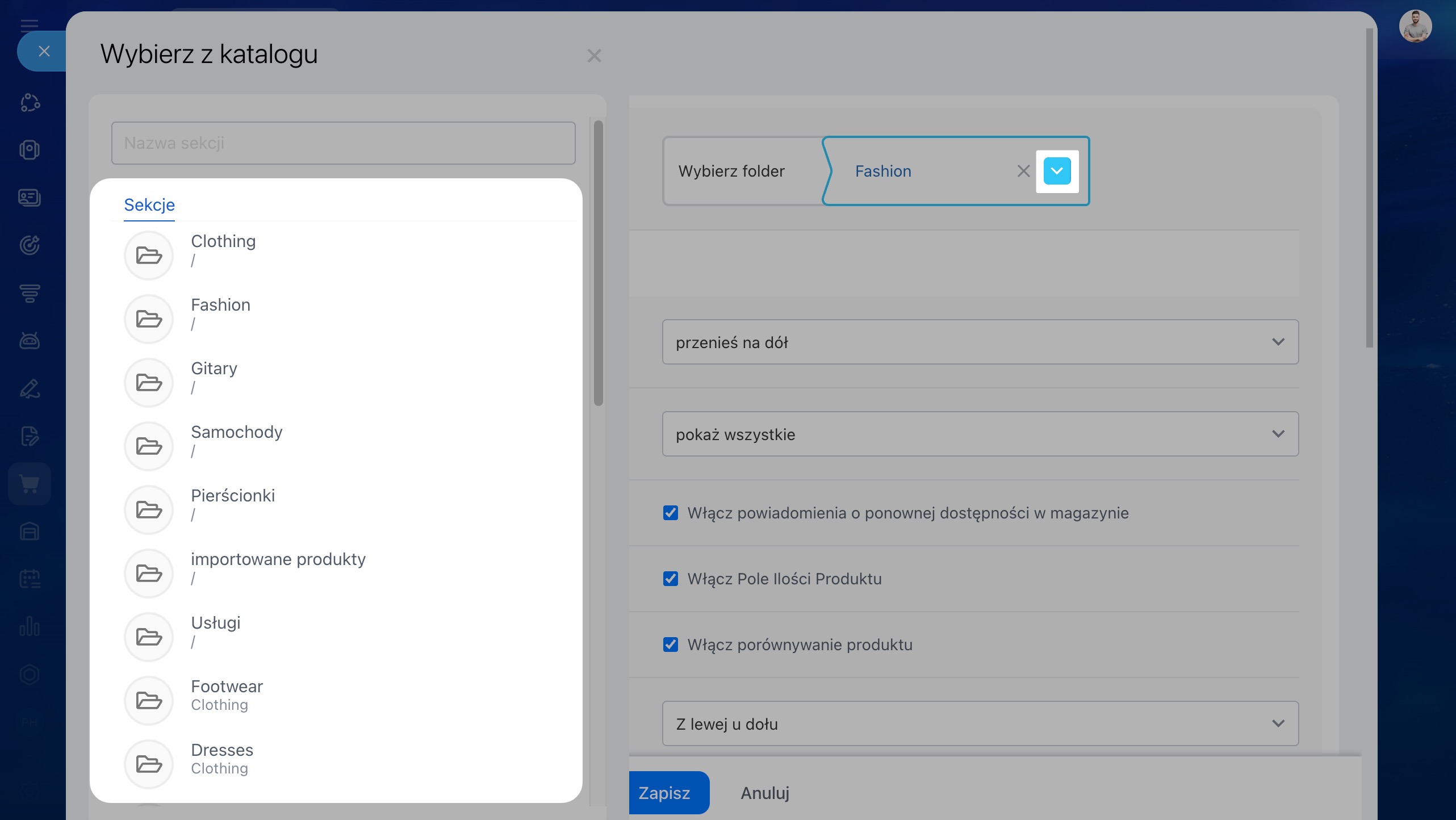 Folder katalogu. Wybierz, która sekcja katalogu będzie widoczna dla klientów na stronie.