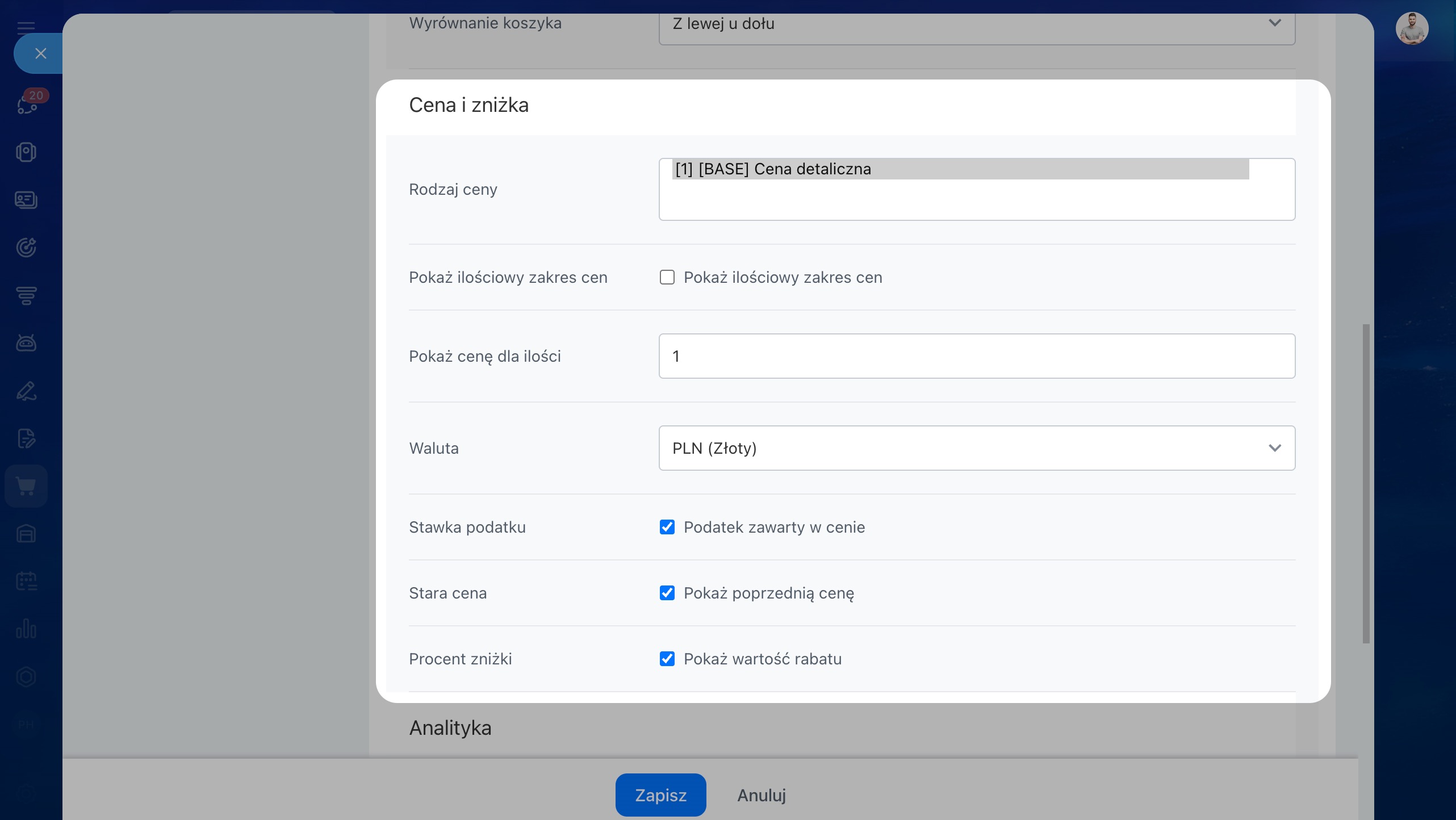 Cena i rabaty. W tym bloku można skonfigurować, w jaki sposób ceny będą wyświetlane klientom.