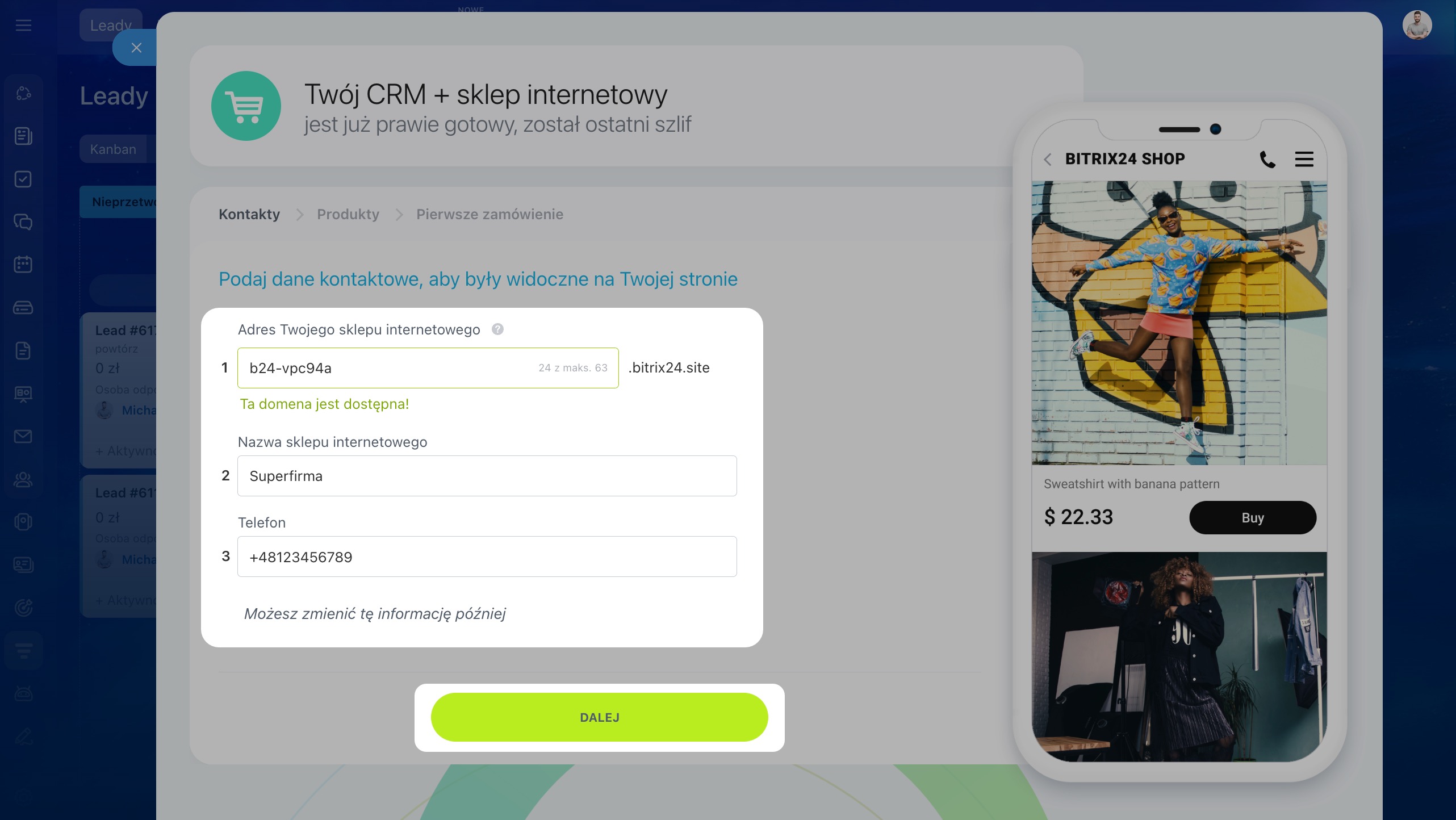 Po skonfigurowaniu sklep jest gotowy do przyjmowania zamówień, a wszystkie dane automatycznie trafiają do CRM: