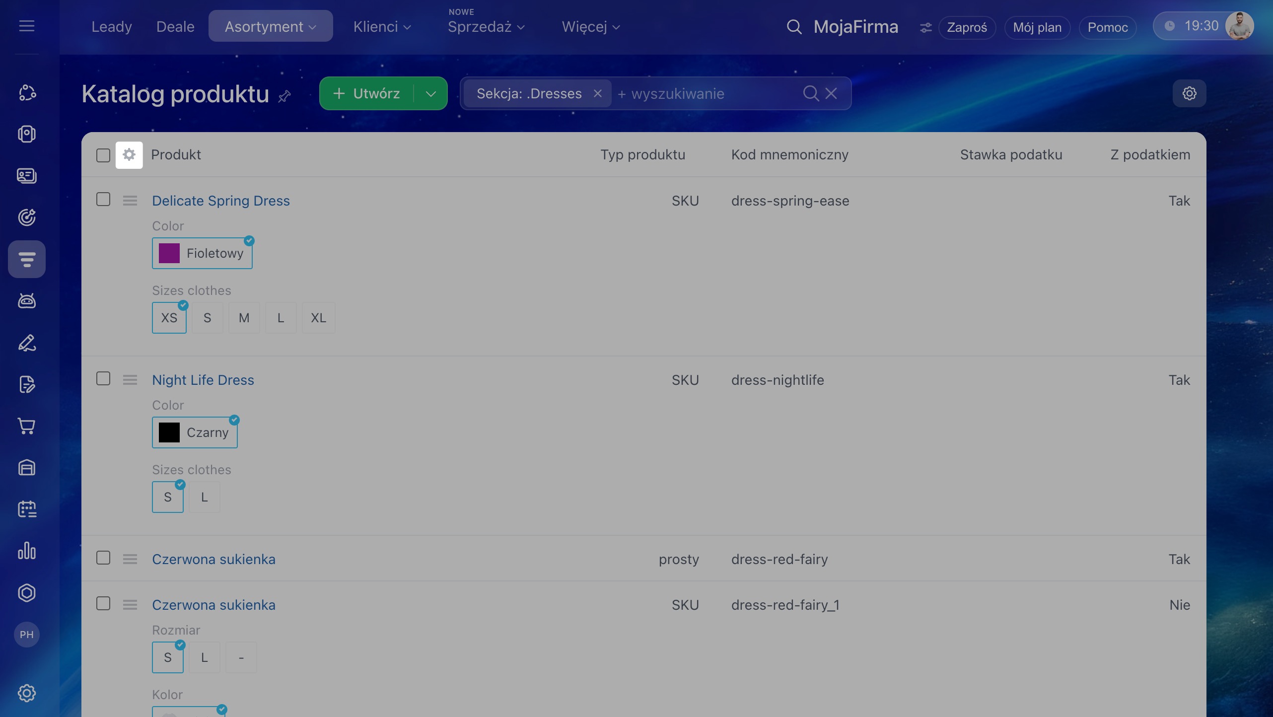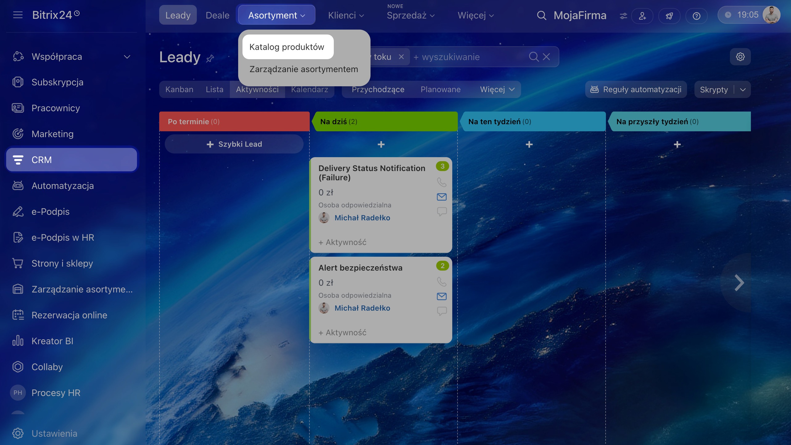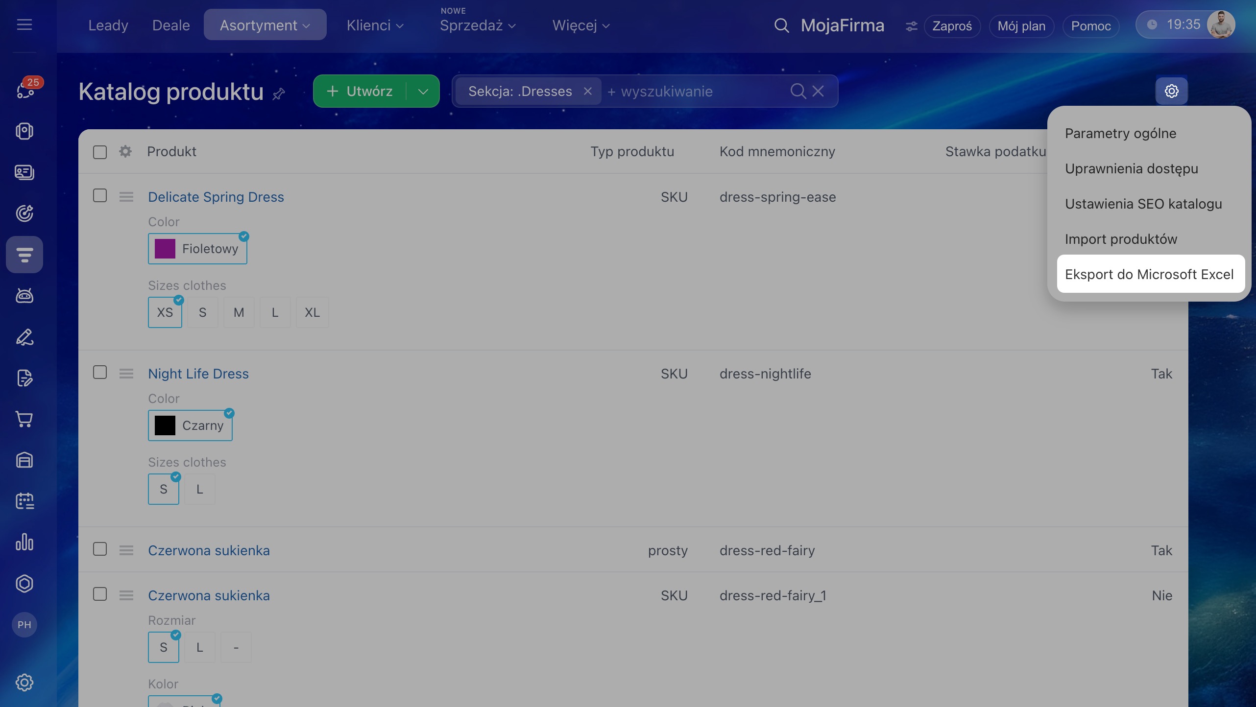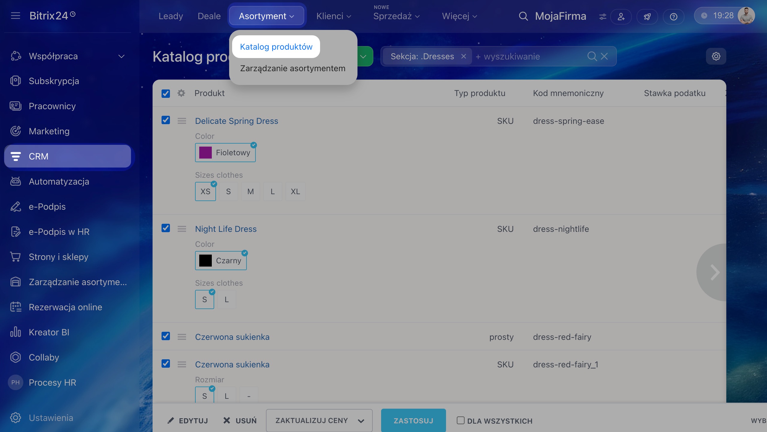 1–3. Przejdź do sekcji CRM > Asortyment > Katalog produktów.