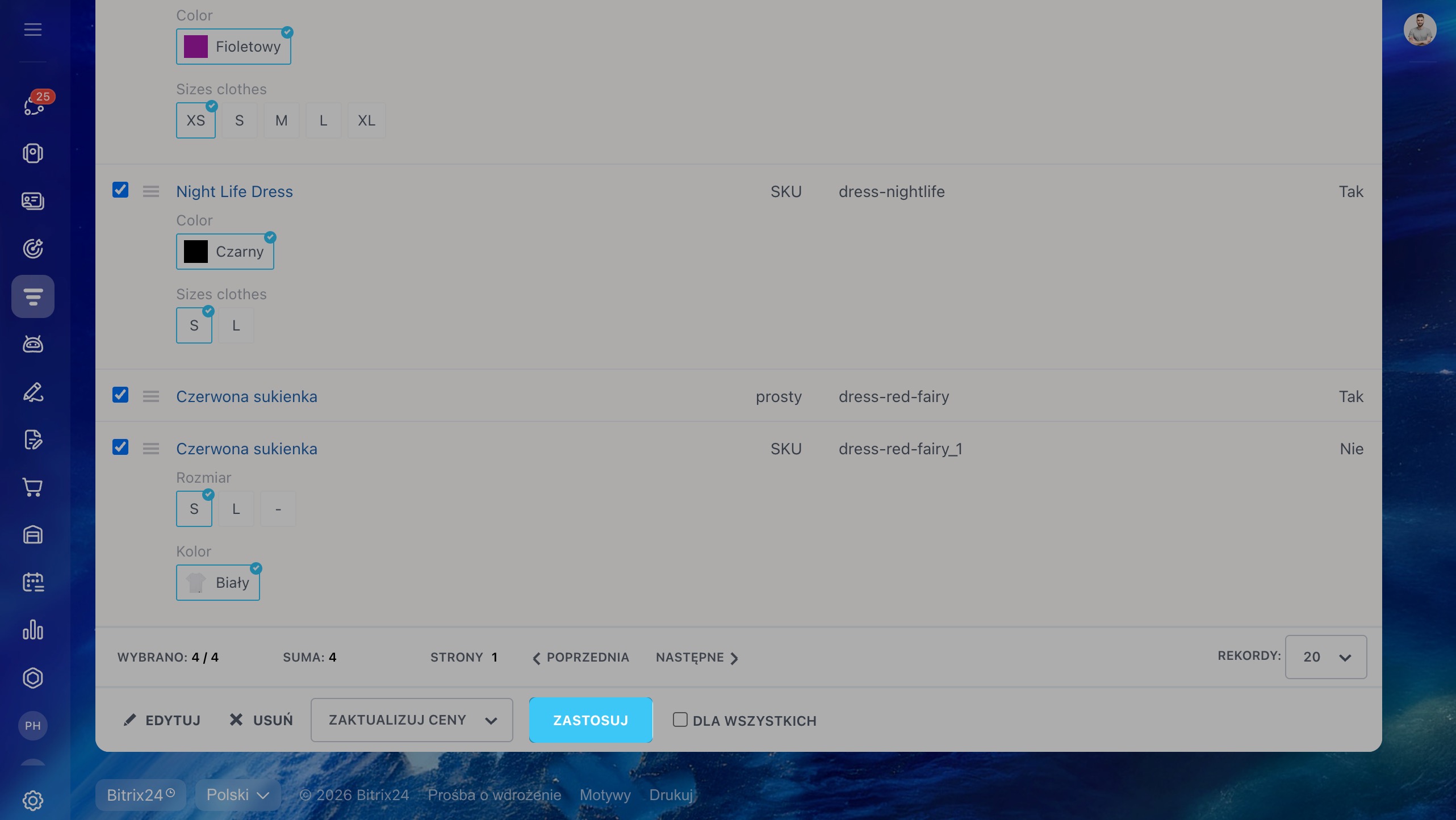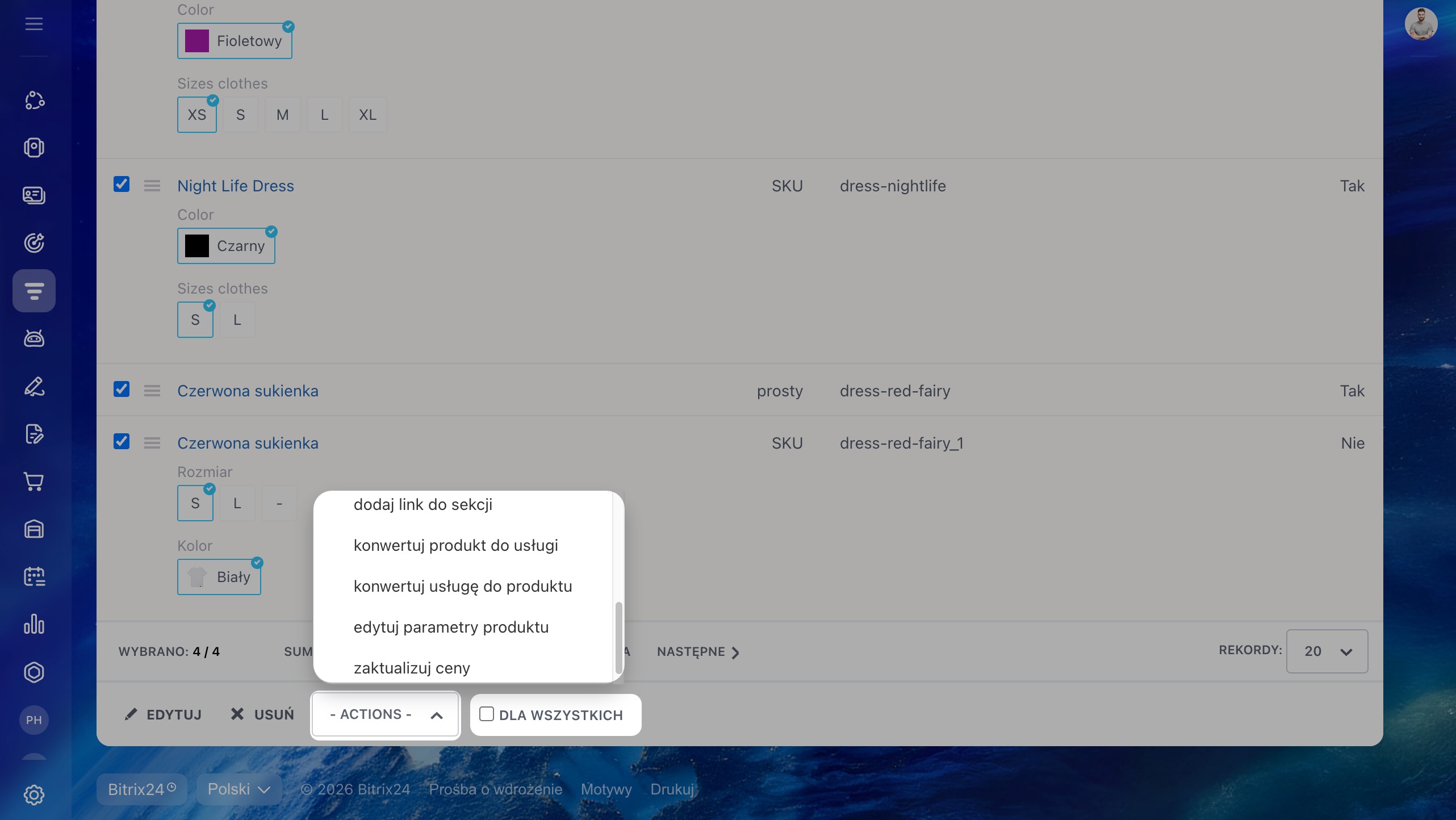 - W Bitrix24 produkty w katalogu możesz zaktualizować na dwa sposoby: za pomocą masowych działań lub przez import z pliku.