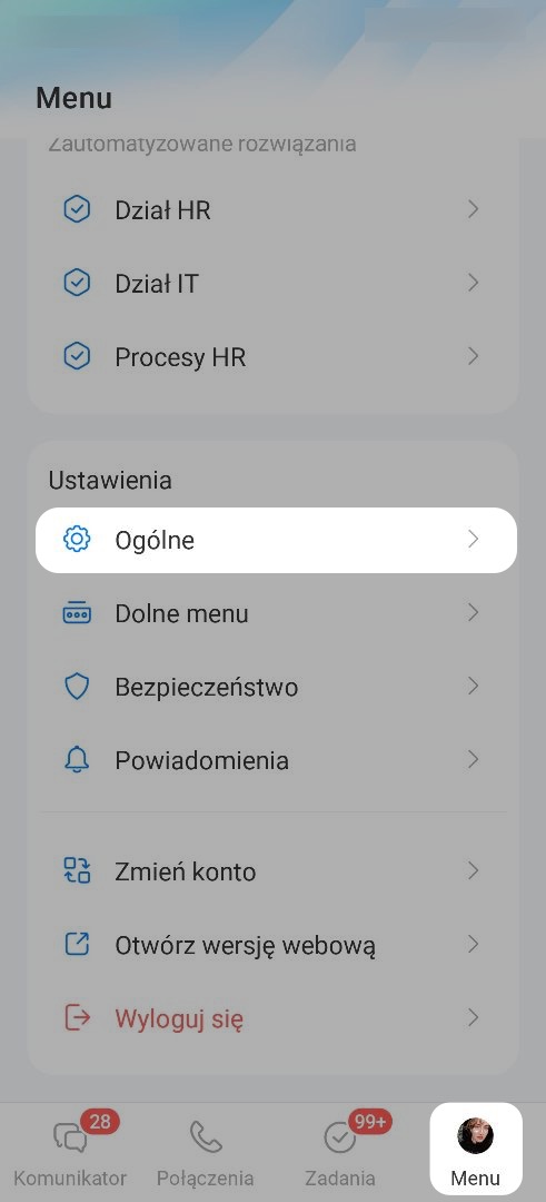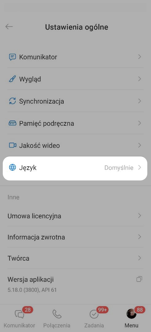Aby zmienić język, przejdź do zakładki Menu w prawym dolnym rogu i otwórz Ustawienia główne.